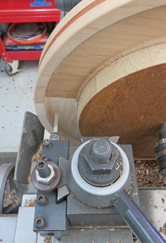 Here is a close-up of what I'm doing. I had to stop at this spot because I was bumping against my wooden clamp plate.