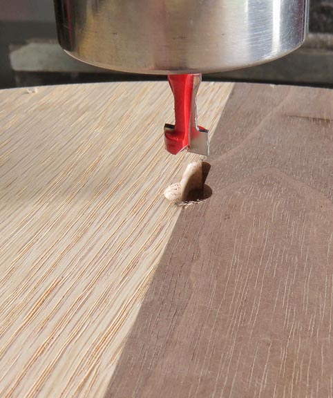 the clock. The red tool is a key-slot cutter and is made to cut a hole